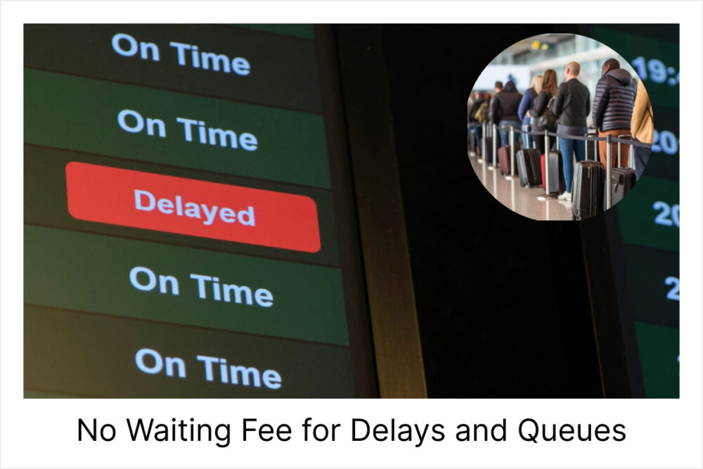 Delays at the arrival gate, like flight delays and customs queues, can happen. Our service aims to help in these situations.