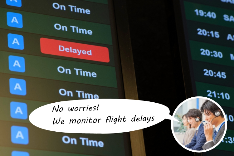 In such cases, we adjust the meeting time to match the actual arrival time, so you can rest assured.