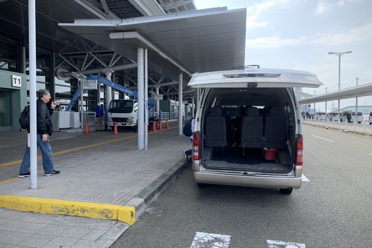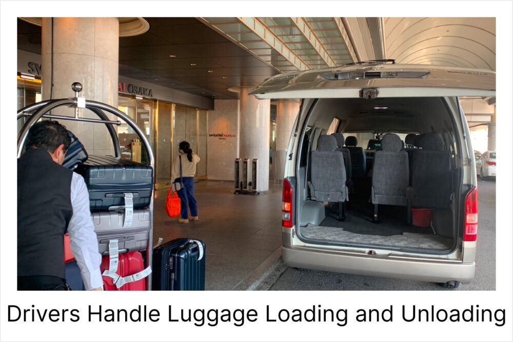 Upon reaching Itami Airport departure floor, the driver will unload the luggage.