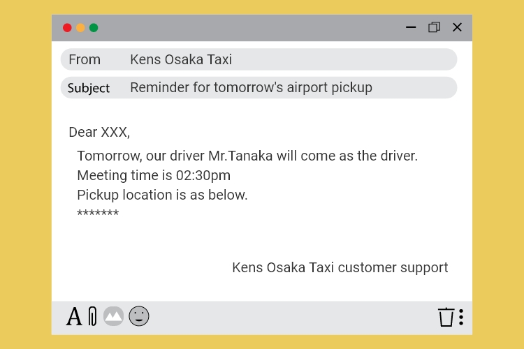 On the day before the service, we will send you a reminder message with the driver's name and meeting details.